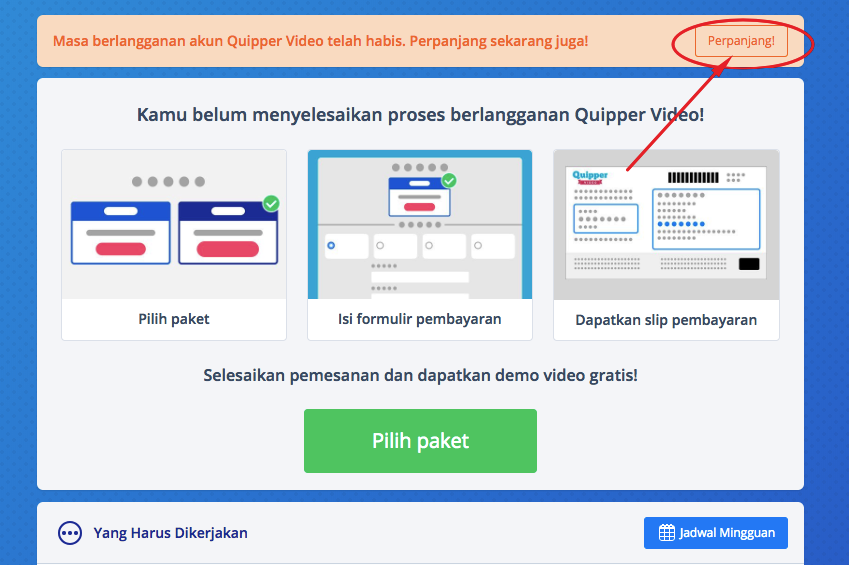 2. Setelah login, silahkan klik tulisan “Perpanjang!”