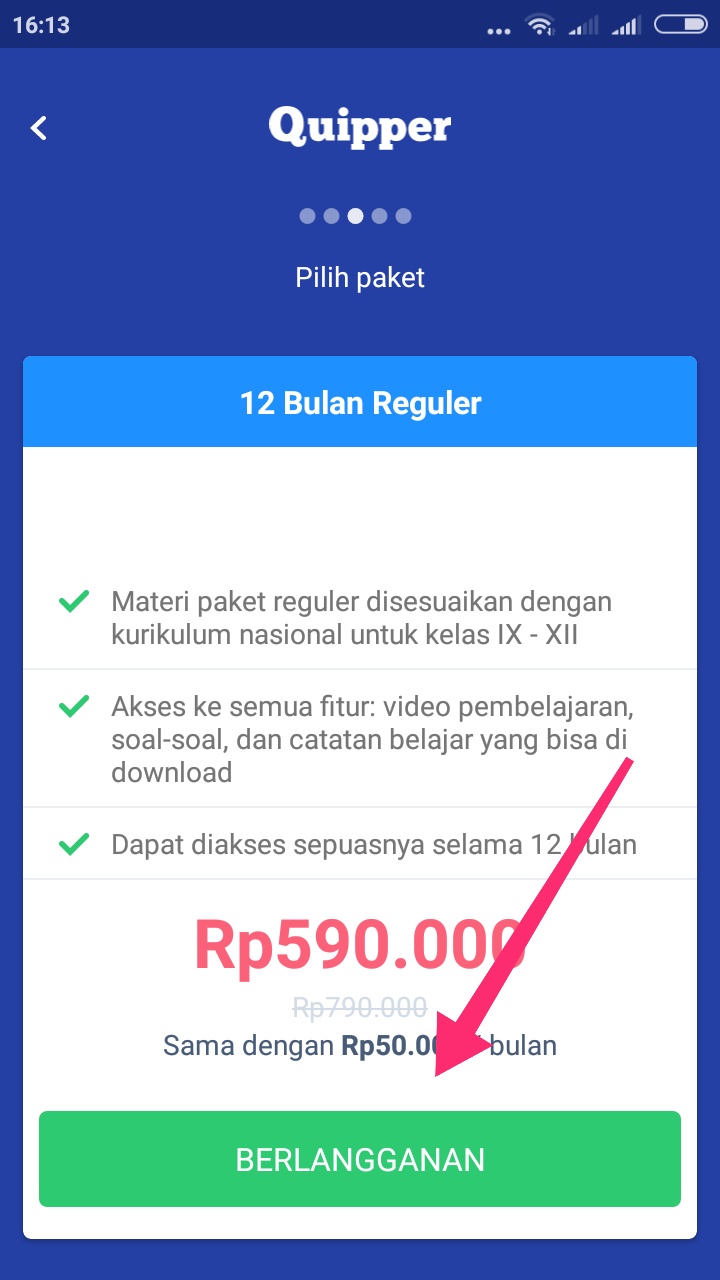 Sampai di sini, kamu sudah selesai berlangganan di Quipper sekaligus mendapatkan harga promo.