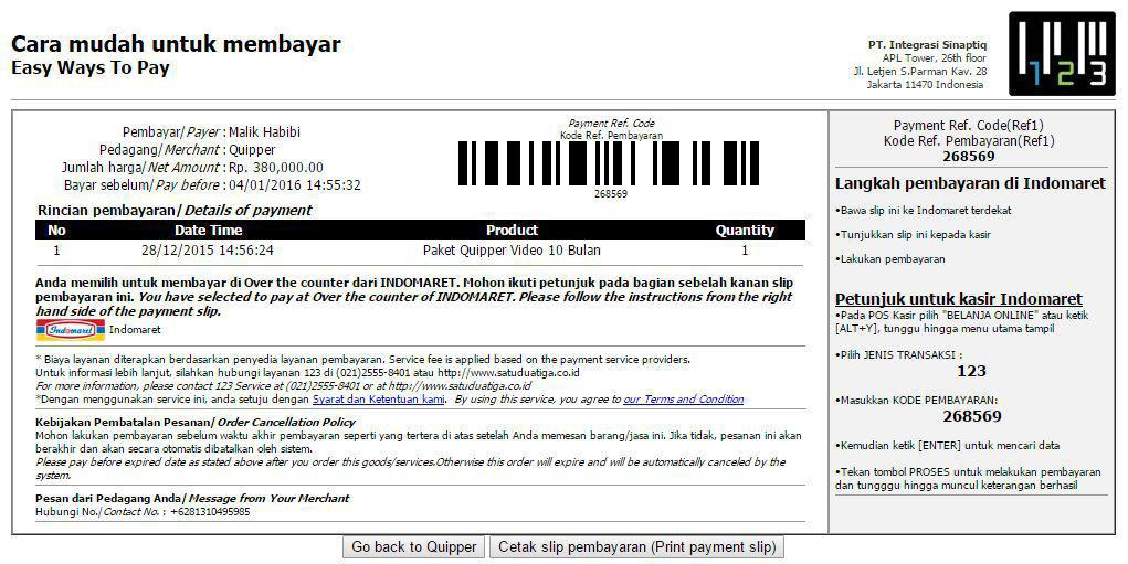 Berikut langkah-langkah dalam melakukan Pembayaran Quipper Video Melalui Indomaret :