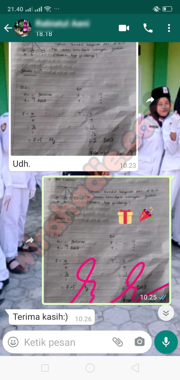Hasil pengoreksian tugas siswa yang sudah mengumpulkan. Untuk pemberian nilai atau koreksi tugas siswa gunakan aplikasi edit foto yang ada di aplikasi android, atau bisa langsung diedit di whatsapp saat pengiriman gambar.