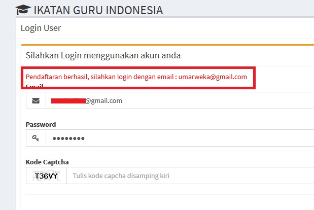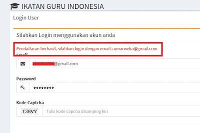 Pendaftaran berhasil, silahkan login dengan email : xxxxxx@gmail.com