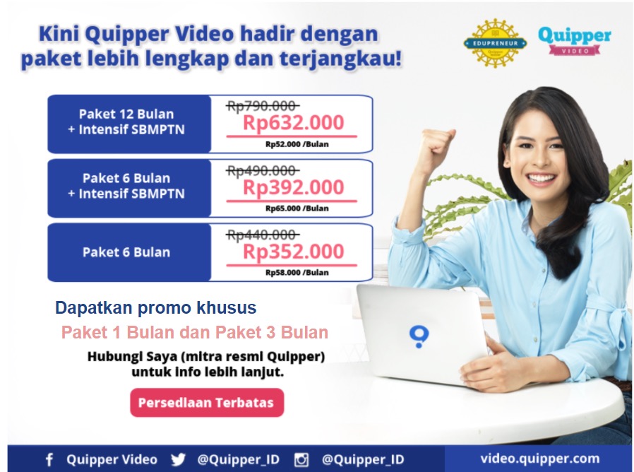 Untuk update info harga terbaru silahkan cek di sini Harga Paket Berlangganan Quipper Video Terbaru!