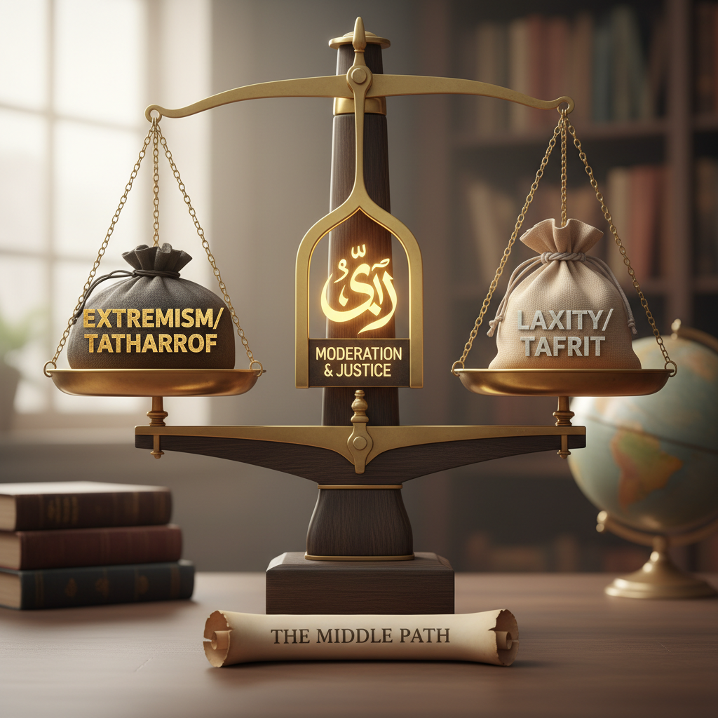- Ummatan Wasatan: Ini adalah mandat teologis (perintah agama) bagi umat Islam untuk selalu bersikap moderat. Pertengahan di sini berarti keseimbangan antara dimensi duniawi dan ukhrawi (akhirat), antara rasionalitas dan spiritualitas, serta antara individualitas dan sosialitas.