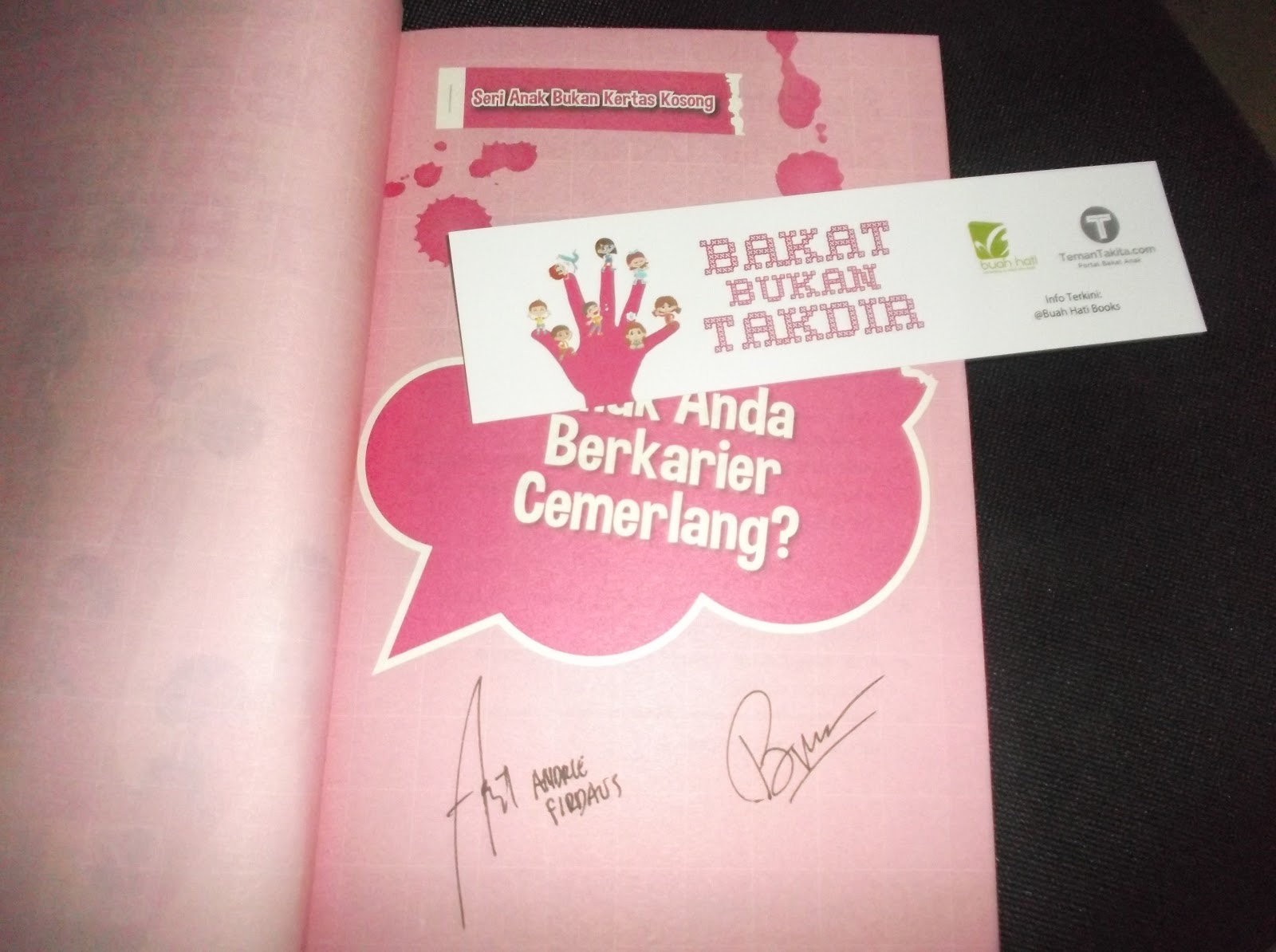 Hari itu bertepatan dengan hari Selasa, 22 Maret 2016. Saya memesan lewat online sebuah buku edukasi yang sangat menarik minat saya yaitu buku yang berjudul, “Bakat Bukan Takdir” karangan dari dua orang trainer senior di bidang pendidikan. Yang kapasitasnya sudah tidak diragukan lagi. Selain berpengalaman keduanya juga sudah lama bergelut di dunia literasi, dan ide-ide brilian sangat mengundang decak kagum karena dari buku yang diterbitkan semuanya sangat menarik, dari buku yang pertama yang berjudul “Anak Bukan Kertas Kosong”, dan kini beliau juga meluncurkan buku yang tidak kalah menariknya dengan buku yang pertama, yang berjudul “Bakat Bukan Takdir”. Buku ini memberikan terobosan atau dobrakan yang selama ini kita selalu menganggap bahwa bakat itu takdir yang sudah diberikan oleh-NYA seolah-olah tidak bisa dirubah. Padahal kenyataannya bakat itu tidak hanya takdir. Namun, bisa kita latih secara konsisten sehingga mampu melahirkan bakat sesuai minat. Itulah salah satu alasan saya sehingga saya memesan buku itu. Apalagi status preorder kita bisa mendapatkan tanda tangan langsung dari penulisnya. Sangat menarik bukan?