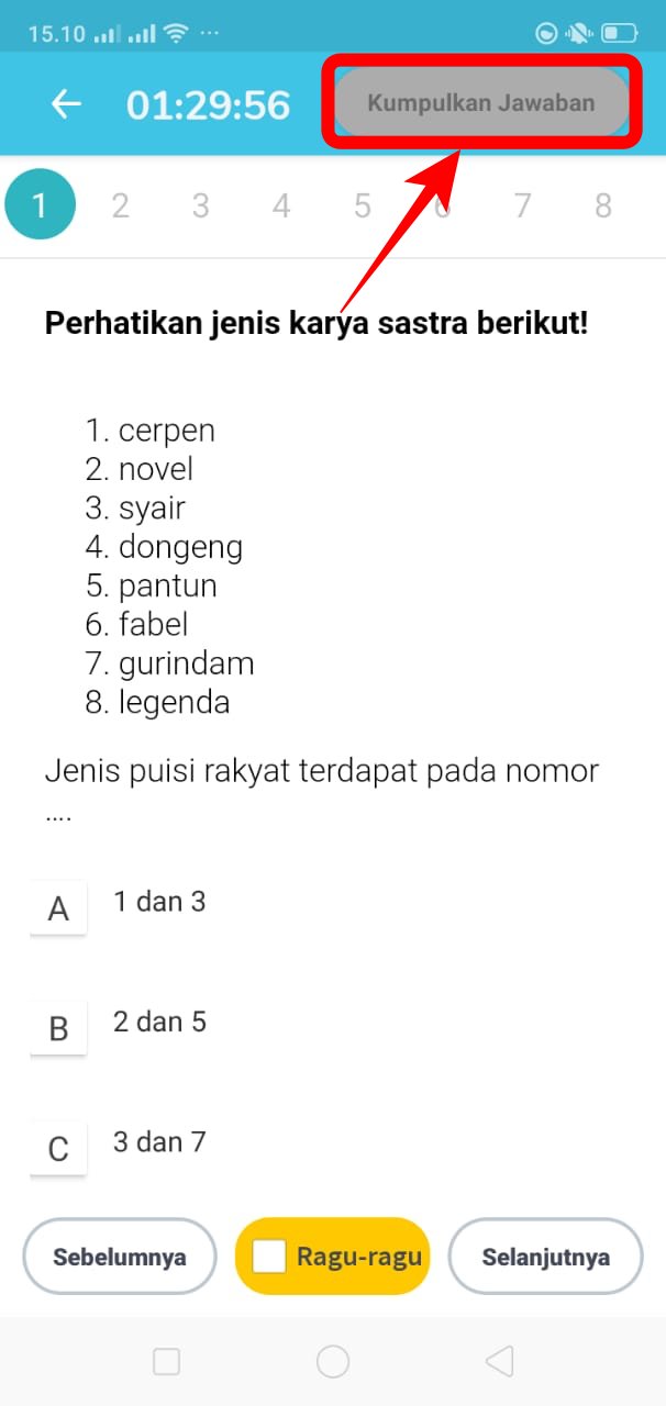 7. Setelah semua soal terjawab kamu langsung klik Kumpulkan Jawaban pada pojok kanan atas.